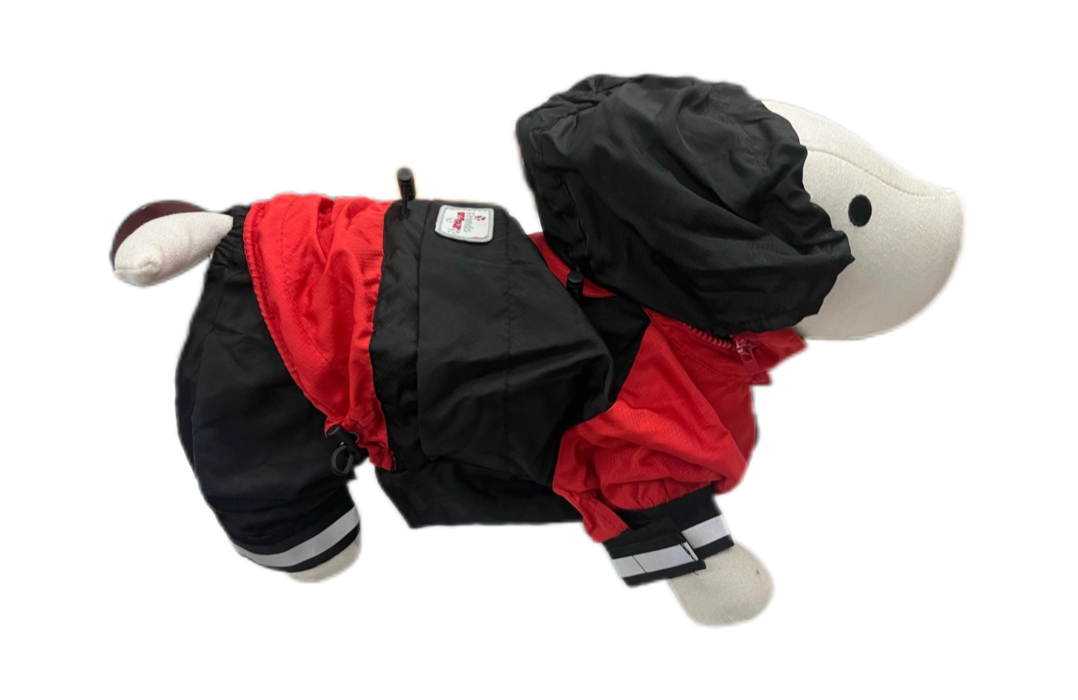 Kabanica kojoj može da se skine deo za zadnje noge ili stavi po potrebi. Kapuljača može da se uvuče.