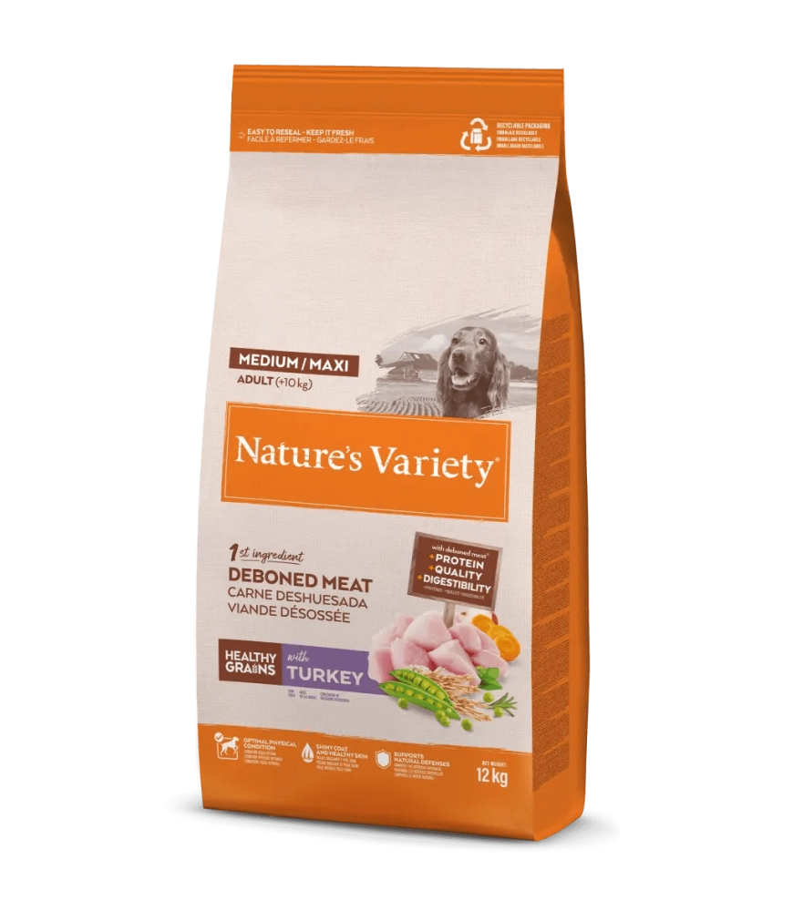 Ćureće meso bez kostiju* (16%), sušeni pileći proteini (15%), sušeni grašak* (15%), ovas* (12%), smeđi pirinač* (7%), integralni ječam*, kukuruzni proteini, živinska mast* (6%), hidrolizovani životinjski proteini (živina, svinjetina, riba) (4%), pulpa cvekle*, minerali, sušena šargarepa* (0,5% ekvivalentno 4% sveže šargarepe), sušena jabuka* (0,3% ekvivalentno 2% sveže jabuke), sušene morske alge (kelp)* (0,01%), sušeni ruzmarin* (0,01%). *Prirodni sastojci vitamin A 27000 IJ, vitamin D3 1200 IJ, vitamin E 650 mg, vitamin C 300 mg, gvožđe(II) sulfat monohidrat 260 mg (Fe: 86 mg), kalijum jodid 1,9 mg (I: 1,4 mg), bakar(II) sulfat pentahidrat 33 mg (Cu: 8,8 mg), mangan sulfat monohidrat 123 mg (Mn: 40 mg), cink sulfat monohidrat 370 mg (Zn: 135 mg), natrijum selenit 0,24 mg (Se: 0,11 mg), 28% sirovi proteini 16% sirove masti 3% sirova vlakna 7,5% sirovi pepeo 0,2% omega 3 3% omega 6