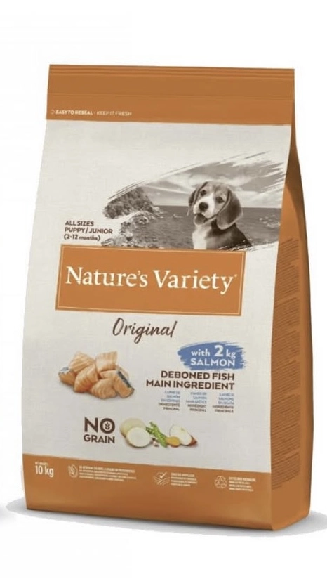 Losos bez kostiju* (20%), sušeni protein tunjevine (15%), sušeni grašak* (15%), proteini krompira, skrob od graška*, mast živine* (7%), suvi slanutak* (7%), sušeni krompir* (4,5%), hidrolizat proteina (4%), sušeni protein lososa (3%), pulpa repe*, sušeni koren cikorije*, sušena šargarepa*(0,5%ekvivalentno 4%sveže šargarepe), riblje ulje (0,5%) , minerali, sušena jabuka * (0,3% ekvivalentno 2% sveže jabuke)., * Prirodni sastojci. Analitički sastav: Sirovi protein 33%, sirova mast 18%, sirova vlakna 3%, sirovi pepeo 7%, esencijalne masne kiseline 3.8%, DHA 0.3% Hranljivi dodaci/kg: Vitamin A 27000 IU, vitamin E 450 mg, vitamin C 350 mg, gvožđe (II) sulfat monohidrat 260 mg (Fe: 86 mg), kalijum jodid 1,9 mg (I: 1,4 mg), bakar (II) sulfat pentahidrat 33 mg ( Cu: 8,8 mg), mangan -sulfat monohidrat 123 mg
