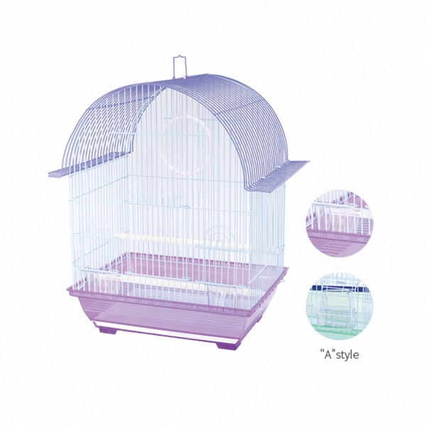 Kavez za ptice sa dve prečke, ljuljaškom, hranilicom i pojilicom.