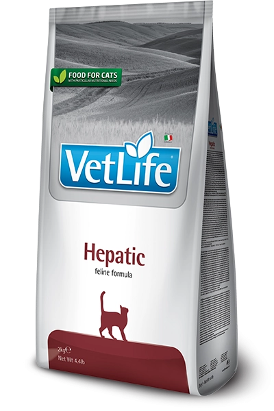 Podrška funkciji jetre u slučaju hronične insuficijencije. Farmina Vet Life Hepatic je kompletna dijetetska hrana za mačke, namenjena podršci funkciji jetre u slučajevima hronične insuficijencije. Hrana sadrži namernice sa umerenom koncentracijom visoko kvalitetnih proteina, esencijalnih masnih kiselina i svarljivih ugljenih hidrata.