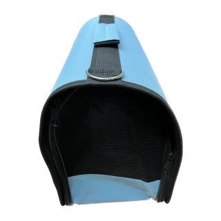 U svetlo plavoj boji. Sa malom ručkom za nošenje u ruci + dugačka ručka za nošenje preko ramena. Otvara se iz jednog dela.