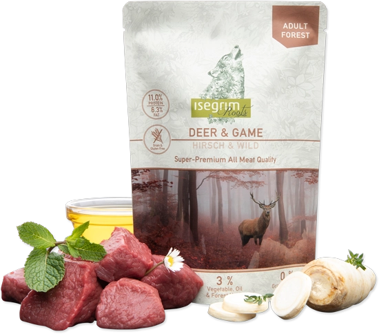 Inspirisan hranjenjem pasa predaka, ovaj meni kombinuje slanu divljač i divljač sa korenom peršuna. Posebno bogat vitaminom C i malo začinskog bilja – moćan i dobro izbalansiran obrok!