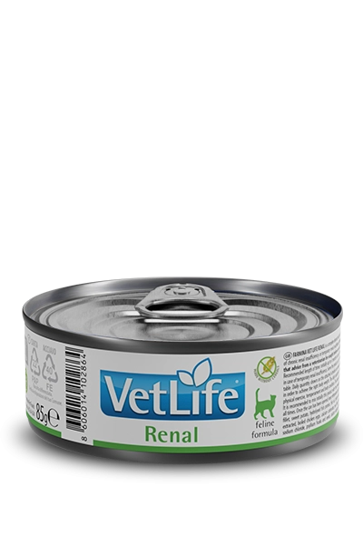 Farmina Vet Life Renal je kompletna dijetetska hrana za mačke formulisana da podrži funkciju bubrega u slučajevima hronične ili privremene bubrežne insuficijencije. Ova dijetetska hrana sadrži nisku koncentraciju fosfora i redukovanu količinu proteina visokog kvaliteta.