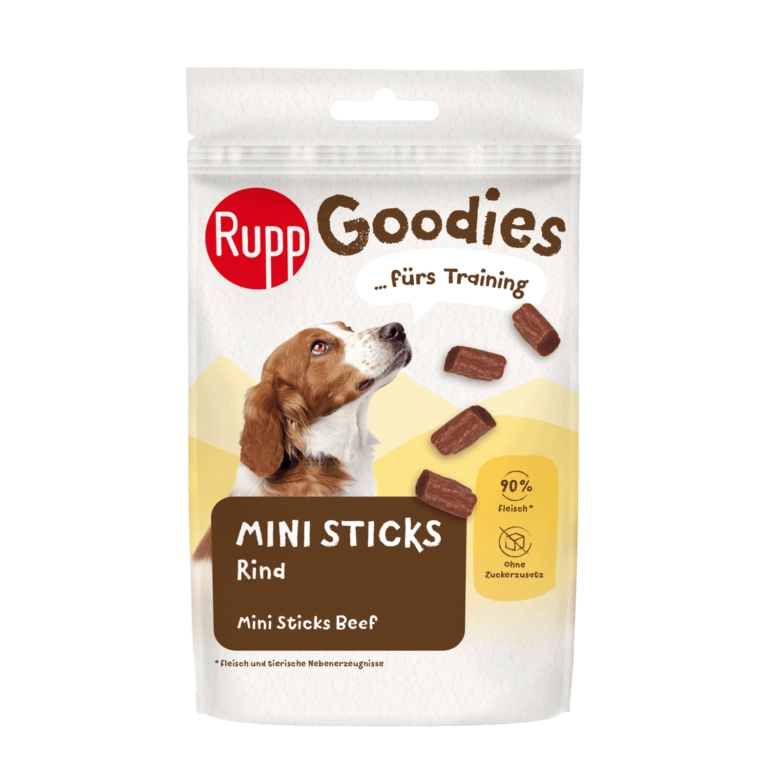 Naši RUPP Goodies Mini štapići sa finom govedinom ne sadrže nikakav dodatak šećera. Ova divna užina je posebno ukusna nagrada i idealna je za upotrebu tokom treninga.
