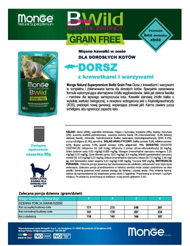 Kompletna hrana za odrasle mačke, sa ukusom bakalara, račića i povrća. Ne sadrži žitarice.