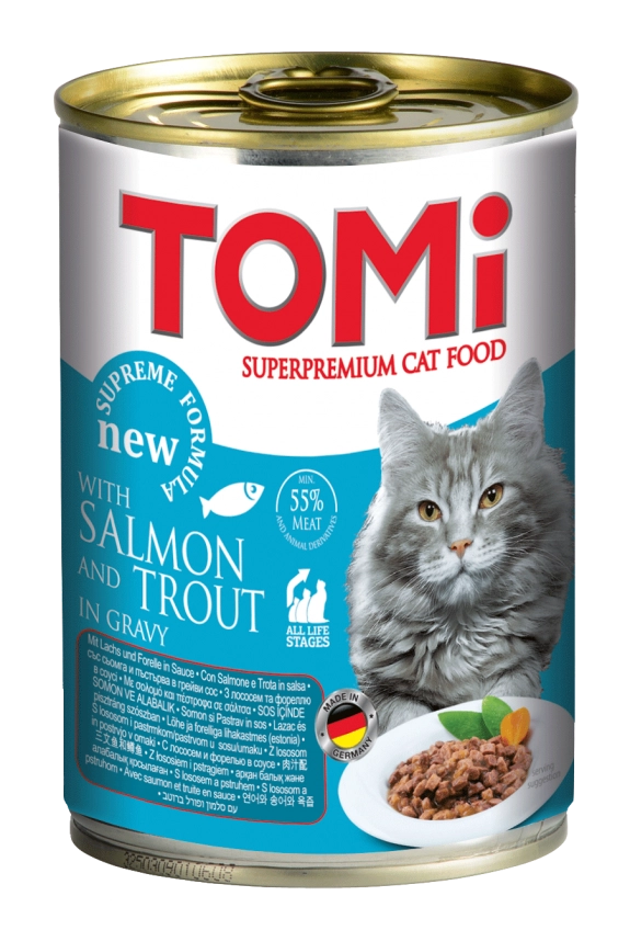 Meso i mesni nusproizvodi (5% losos, 5% pastrmka), žitarice, minerali. ANALITIČKI SASTAV: vlaga 81%, proteini 7,0%, masti 4,5%, pepeo 2,5%, vlakna 0,3%. DODACI po kg: vitamin D3 250 I.U., vitamin E Tocopherol acetat 100 mg, Cu (Cu-(II)-sulfate pentahydrat) 1 mg, Biotin 20 mcg, Taurin 445 mg.