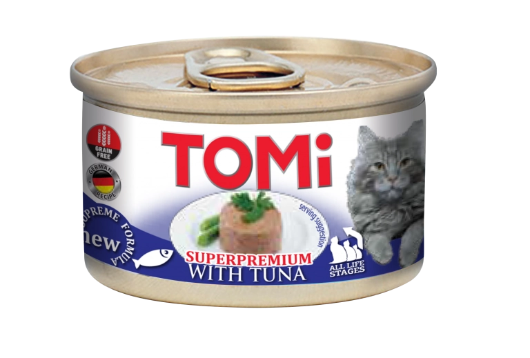 TOMi hrana za mačke koja razmazuje vašu mačku vrhunskim iskustvom jela. Sa zavodljivim nizom individualnih ukusa, recepata i tekstura – svaki pripremljen po najvišim kulinarskim standardima za mačke i dostupan u praktičnim porcijama za jednu porciju. TOMi 85 g superpremijum hrana za mačke je napravljena za mačke koje uživaju u najlepšim stvarima u životu. Ovaj obrok je apsolutno bez dodatog šećera, veštačkih boja ili aroma, a najvažnije je da ne sadrži GMO. U našem proizvodnom procesu ne koristimo antioksidante i konzervanse.