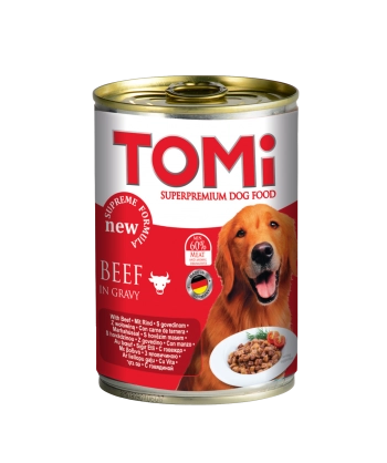 Ovi veliki mesnati komadi kuvani u prirodnom soku biće sve što vaš pas želi. TOMi može zadovoljiti sve dnevne potrebe za ishranom vašeg psa. TOMi konzerve za pse su idealne kao kompletna ishrana za pse ili kao dodatak suvoj hrani. Sadrže 60% mesa što garantuje odličan ukus. Visoko vredni životinjski proteini su izuzetno hranljivi, dok dodaci ishrani kao što su vitamin D3, E i biotin daju vašem psu zdravu kožu i lepu dlaku. Ovaj obrok je apsolutno bez dodatog šećera, veštačke boje ili arome, a najvažnije je bez GMO. U našem proizvodnom procesu ne koristimo antioksidante i konzervanse.