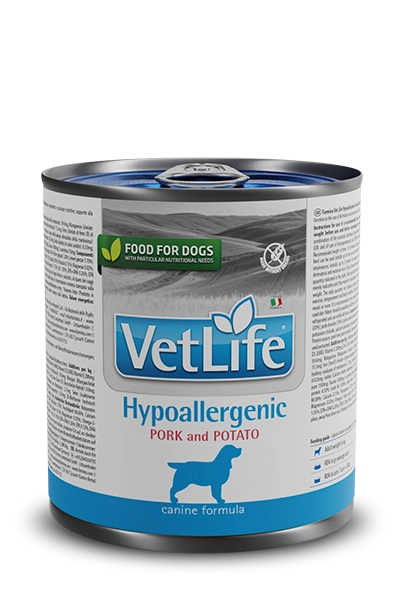 Farmina Vet Life Hypoallergenic Pork & Potato je kompletna dijetetska hrana za pse namenjena redukciji netolerancije na sastojke iz hrane; eliminaciona dijeta; podrška funkciji kože u slučajevima dermatoza i preteranog opadanja dlake.